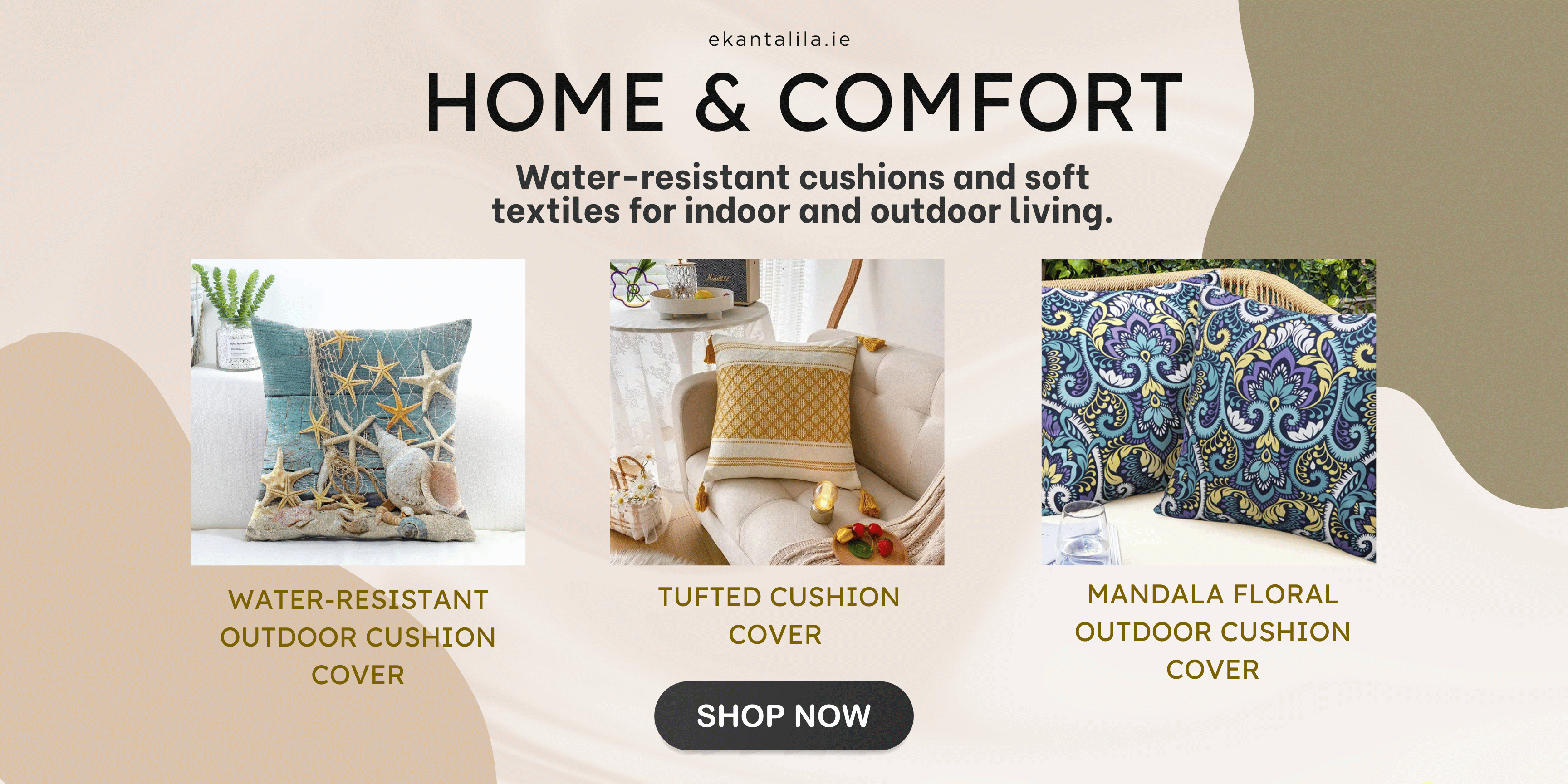 Water-resistant cushion covers and soft textiles to bring warmth to your space.